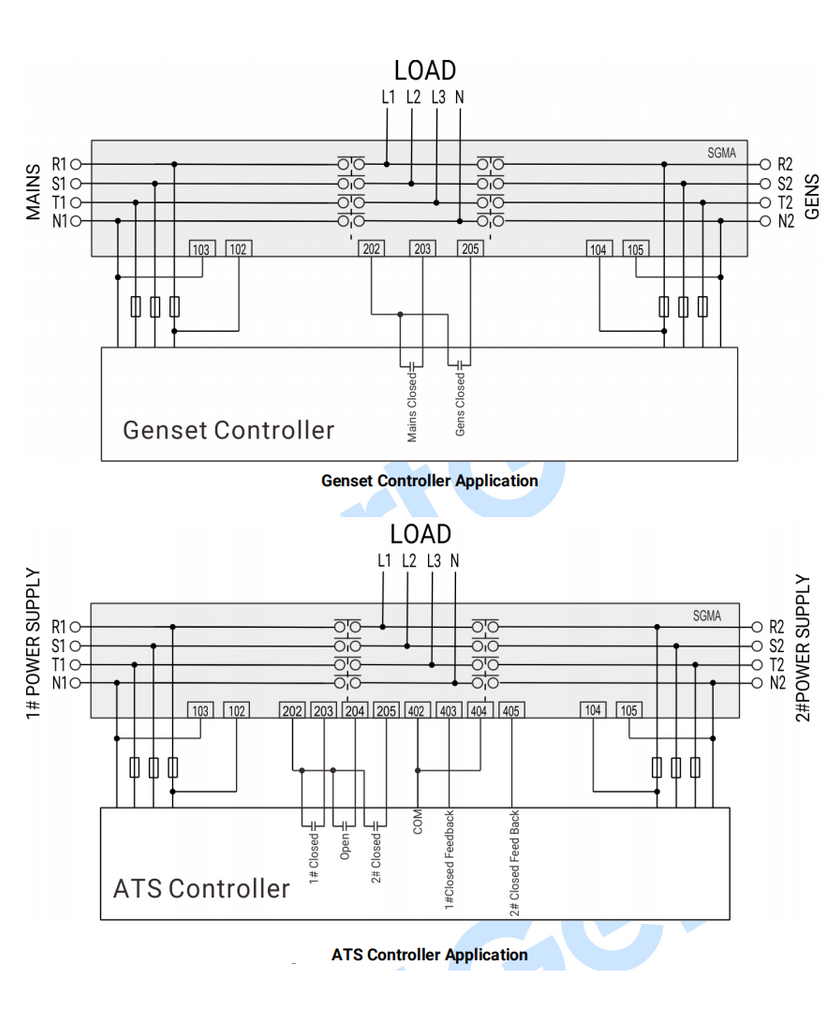 SGMA800~3200A series dual power ATS adopts two-in and one-out structure, with electric key lock and mechanical padlock. Electric key lock: control the internal power supply of the switch, when the electric lock is open, the switch acts the automatic and remote operations; when the electric lock is closed, the switch only acts the manual operation. Mechanical padlock: during maintenance, pulling up the mechanical padlock to cut off the internal power supply of the switch, so the electric and manual operations of the switch will be disabled, which ensures the personal safety.